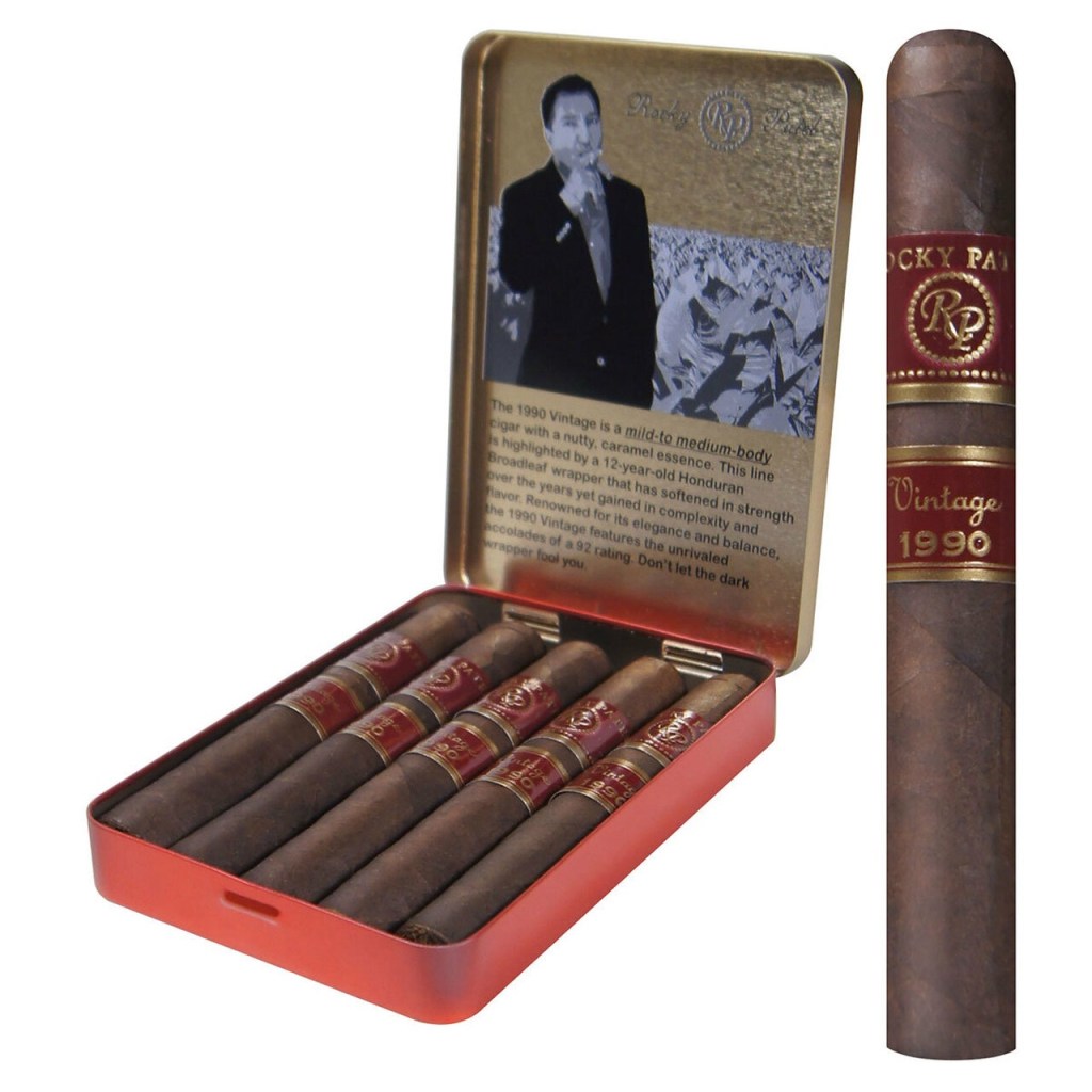 A survivor of the cigar boom, Rocky Patel has outlasted his competition with unrivaled persistence on his quest for perfection. His cigars are the result of blending tobaccos from various regions to produce the perfect blend, and a marked emphasis on quality control. The Rocky Patel Vintage 1990 was the first cigar to bear the Rocky Patel name. Smooth, well-balanced and nutty, this cigar is made with 12 year old Honduran broadleaf wrapper. The Vintage 1990 has been rated 92 by Cigar Aficionado and twice featured in the magazine’s “Top 25 Cigars of the Year”. – Cigar Scanner