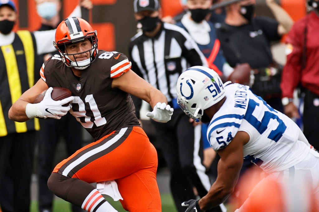 Austin Hooper may quite possibly be the most underrated TE in the NFL. Just think, the Falcons didn’t have him for one season and it caused them to go out and draft TE Kyle Pitts with the 4th overall pick in this year’s draft. Hooper had his worst season last year as far as catch percentage goes (65.7%), but for his career he is 74.9%. I expect Hooper to rebound in his second season with Baker Mayfield and the Browns.