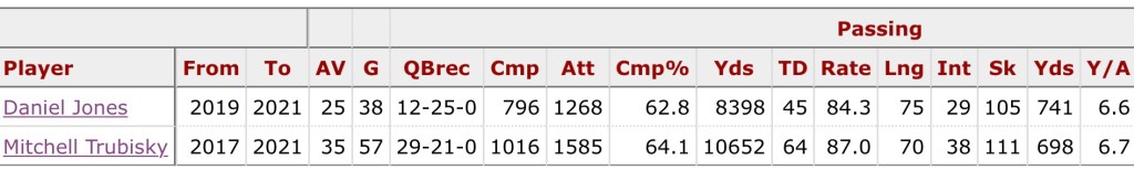 If I learned anything from the 2021 season, it’s don’t believe anything that GM, Chris Ballard or Head Coach, Frank Reich say. The same guys that said Quenton Nelson and Carson Wentz were probably going to miss like half the season are now saying they aren’t sure who their QB will be next year. Well, I’ll help them out, it’s going to be Carson Wentz. One, no one wants that huge contract and he really didn’t play that bad, actually he was pretty good. 27 TDs and only 7 Ints. Just get him some actual WRs and you’ll be fine.