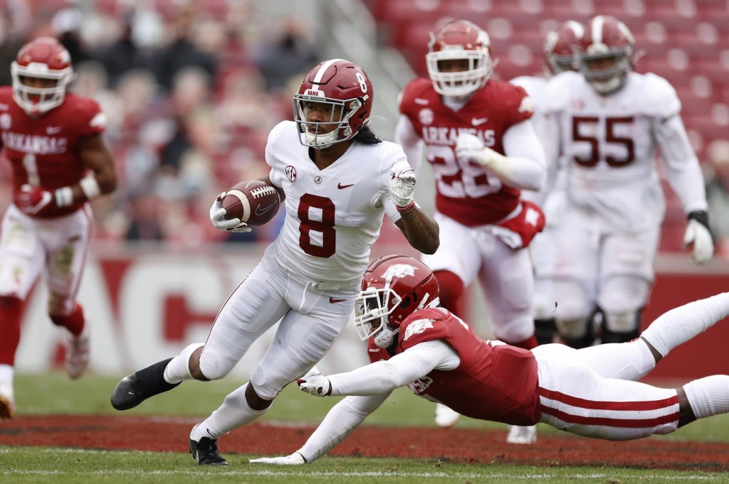 I can already hear it now Jameis to Jameson. I know a lot of people are thinking that the Saints will look to draft a QB with this pick, but that doesn’t make sense. They just resigned Jameis Winston to a two-year, $28 million contract with $21 million in guarantees. So, instead they draft him another WR to throw the ball to, Jameson Williams.