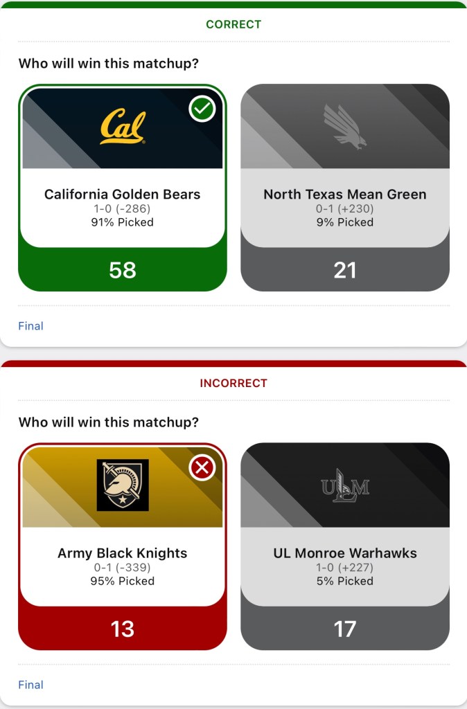 I’m going to start my College Football moneyline pick’em posts back up. I was late posting week 1. So I’m just posting my picks that I made. All future picks will be posted before the games are played. I started off pretty good with a 7-3 record after week 1.