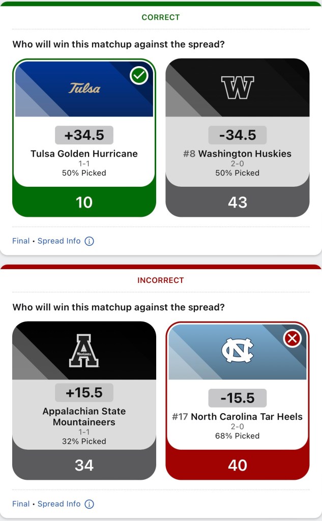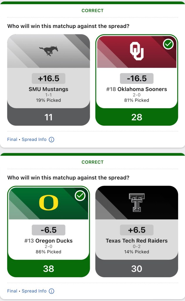 I was also late posting week 2. So I’m just posting my picks that I made. I did pretty good with a 8-2 record this week, bringing my season record to 14-6.