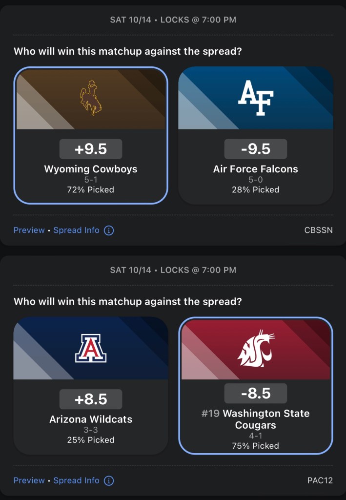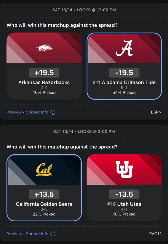 I did a little better and went 6-4 last week. Here are my week 7 College Football Spread Pick’ems. My season record so far is 37-23.