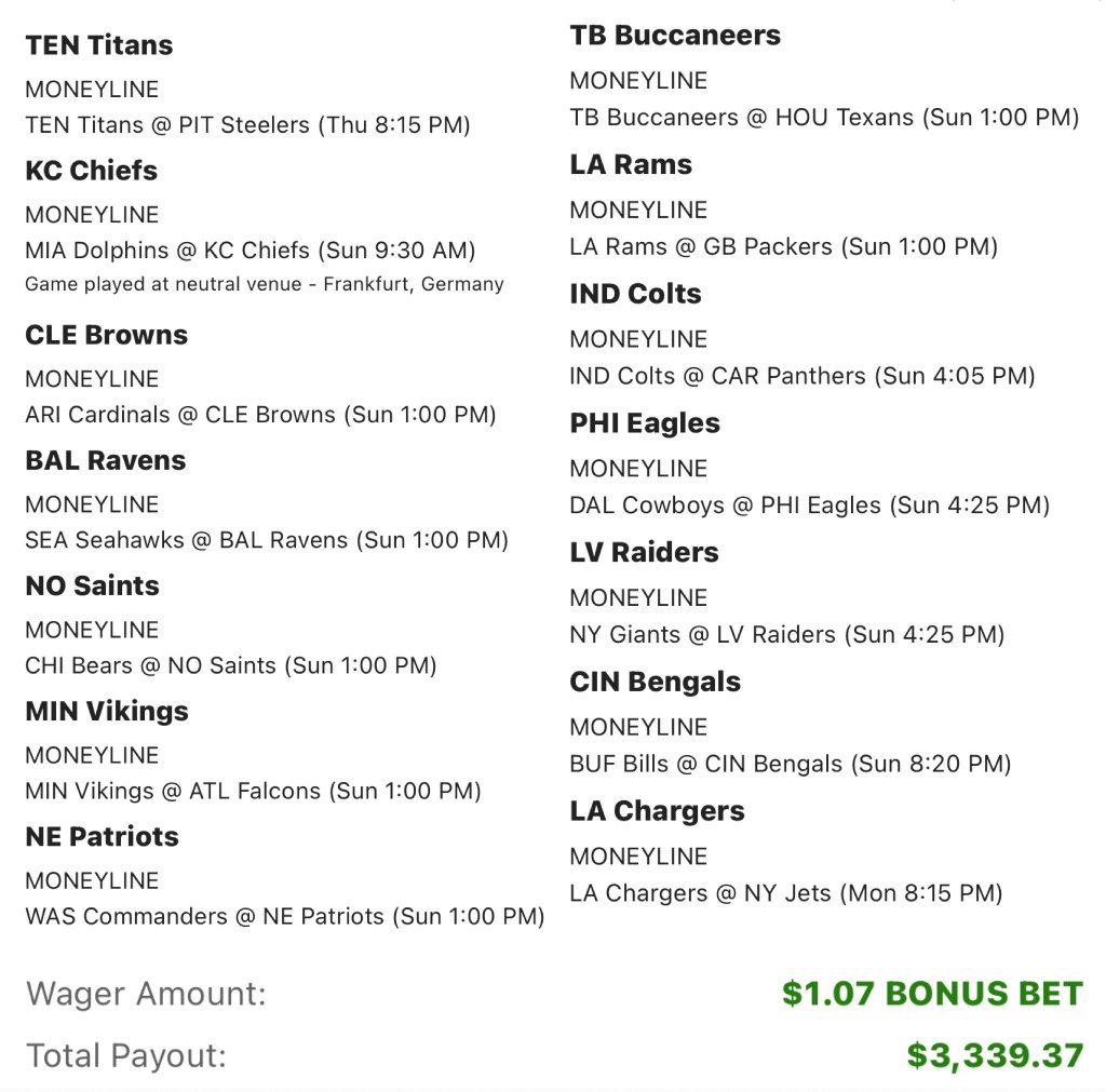 Coming off my best week yet, I went 13-3 bringing my season record to 68-54. Here are my week 9 Moneyline Pick’ems!