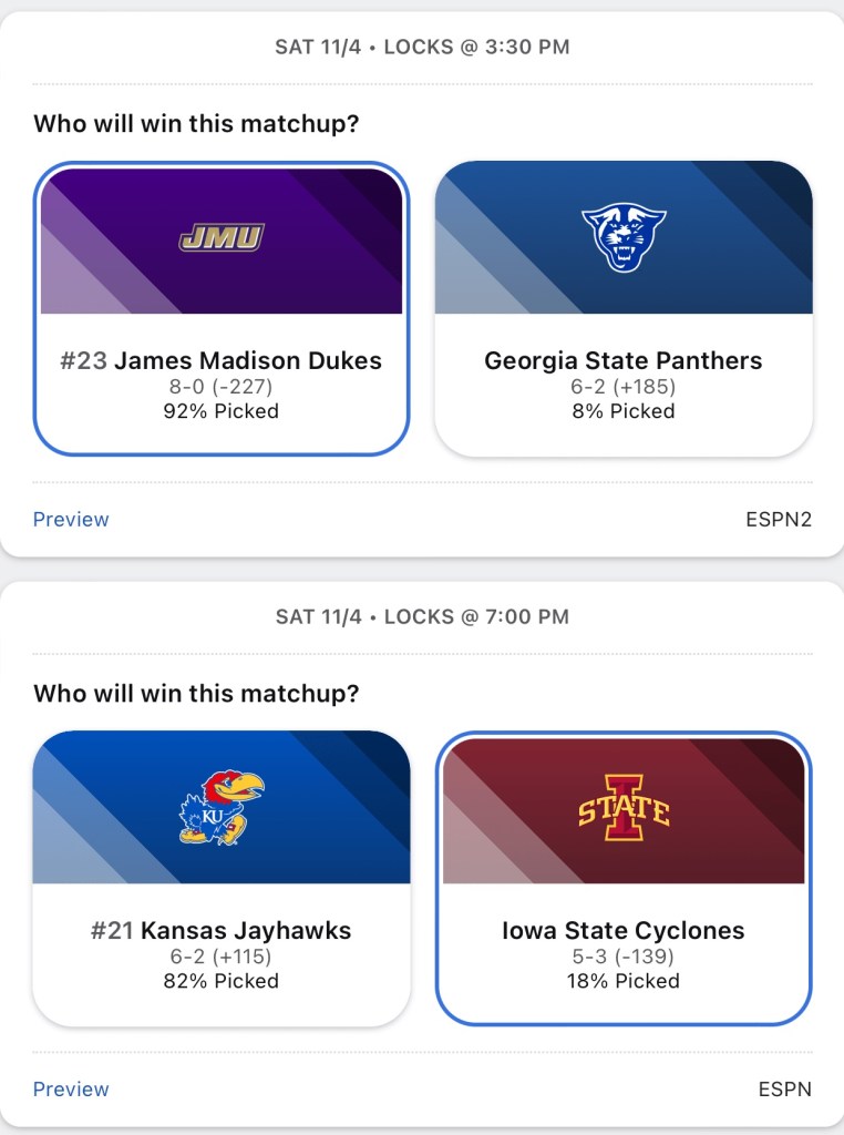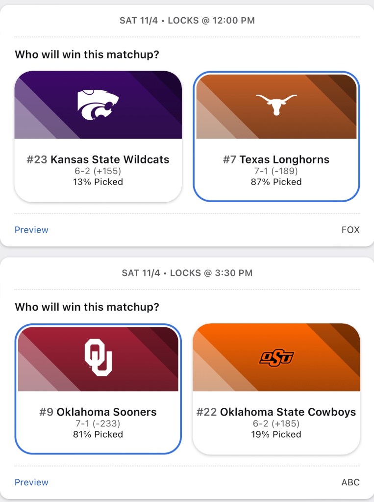 Even better than the week before, I went 7-3 last week to bring my season record to 56-34. Here are my week 10 college football moneyline picks.