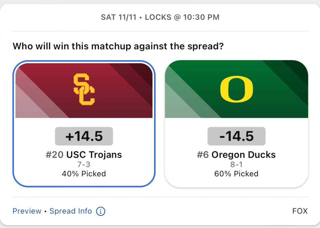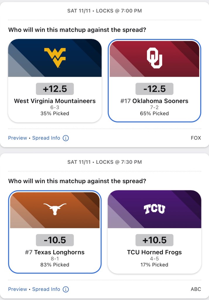 College Football Week 11 Spread Pick’ems Posted byNateNovember 10, 2023November 11, 2023Posted inCollege Football Pick’emsTags:College Bets, College Football, College Pick’ems, Football, Gambling, NCAA Football, NCAA Football 2023, Pick’ems, Pigskin Pick’ems, Spread, week 11 A solid 8-2 last week. Here are my week 11 College Football Spread Pick’ems. My season record so far is 59-41. My Bets This Week Season Record: 59-41 Share this: Click to share on X (Opens in new window) X Click to share on Facebook (Opens in new window) Facebook Like Loading...