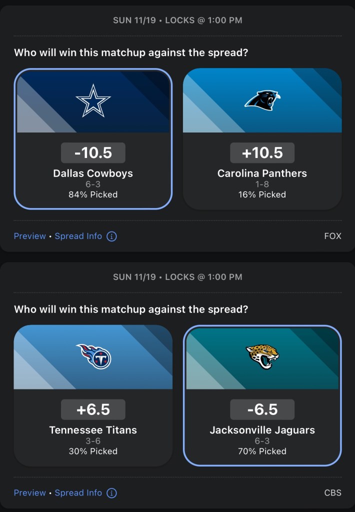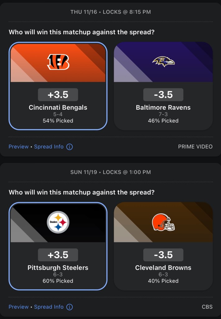 Last week I went the wrong direction, going 4-10, bringing my season record to 73-77. Here are my week 11 spread pick’ems.