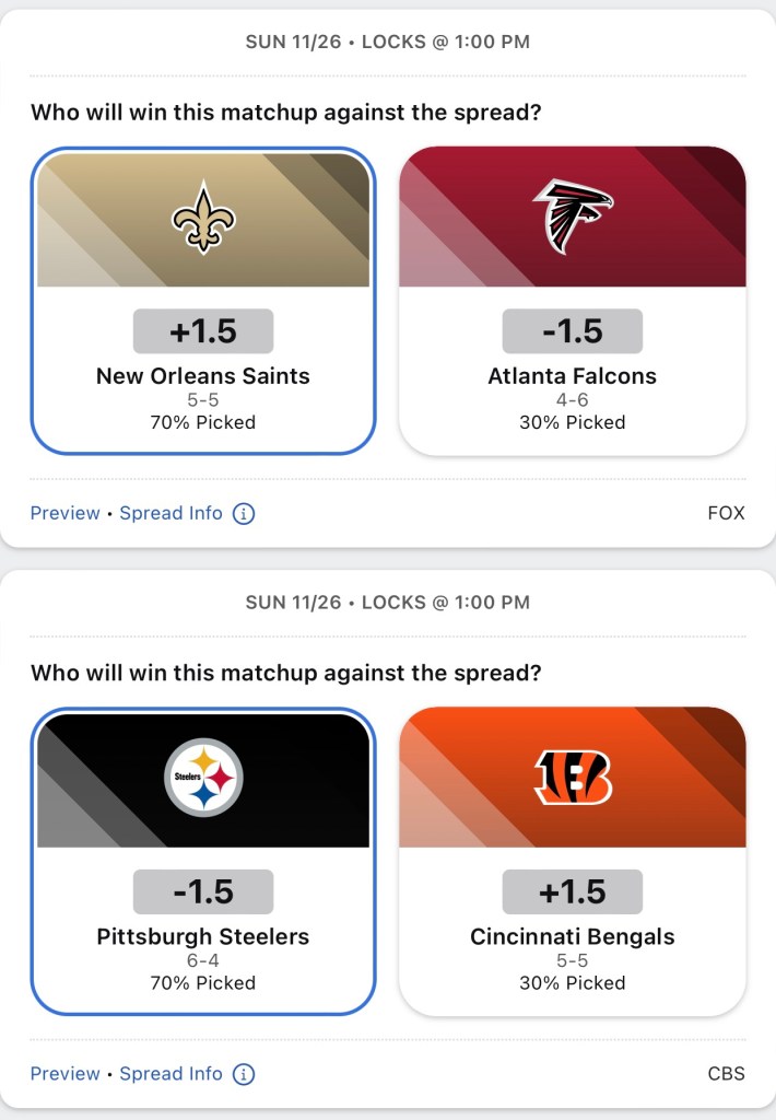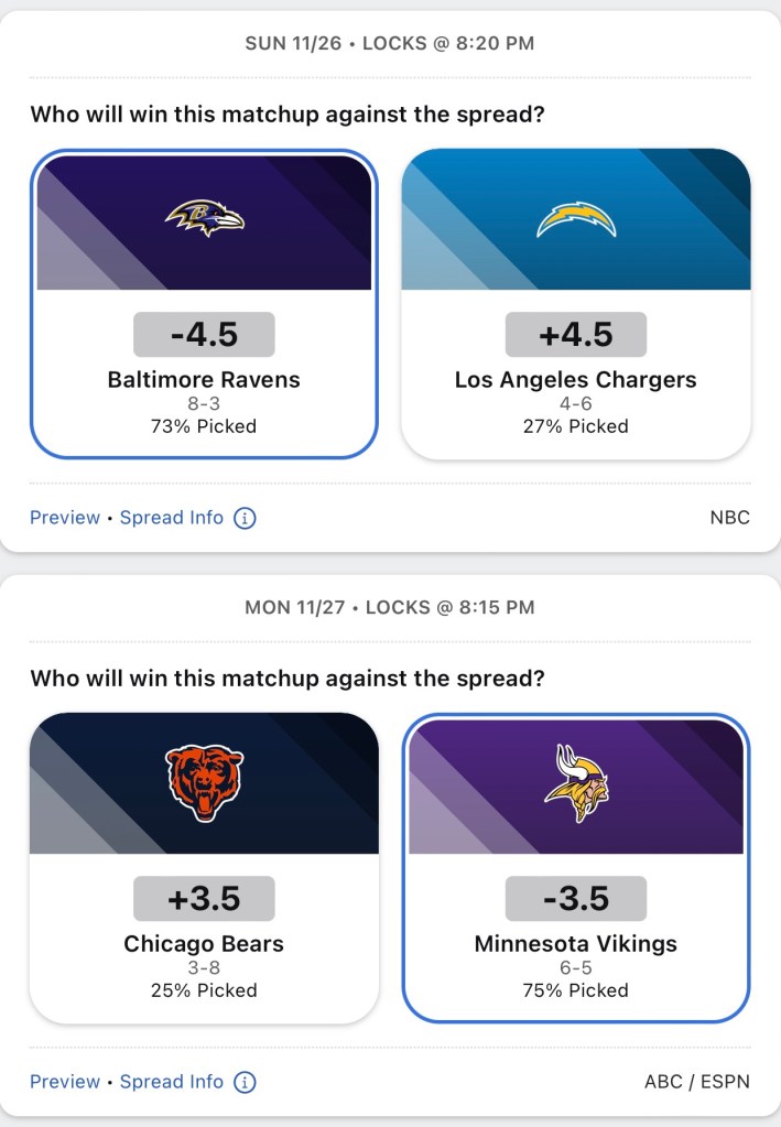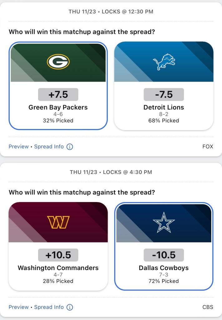 Last week I went 7-7, bringing my season record to 80-84. Here are my week 12 spread pick’ems. Happy Thanksgiving!