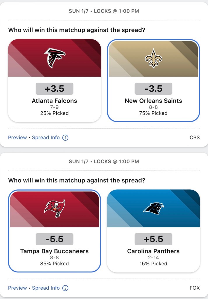 Last week I went 12-4, bringing my season record to 135-121. Here are my week 18 spread pick’ems. Let’s end the season with a perfect pick ‘em!
